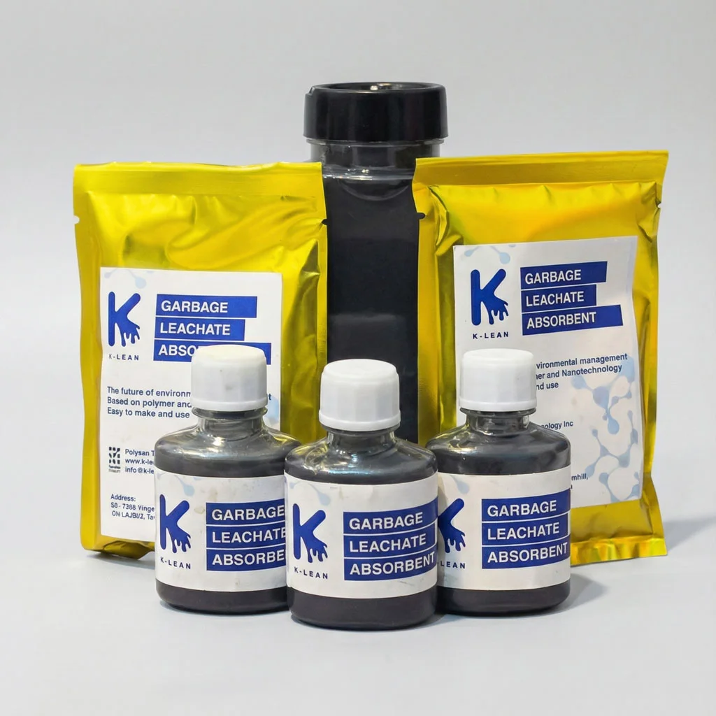 Sodium polyacrylate (SAP) rapidly absorbs liquid leachate.